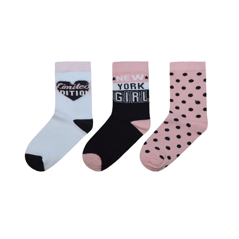 Σετ 3 ζεύγη κάλτσες. Κάθε σχέδιο έχει διαφορετικό σχέδιο σε αποχρώσεις του ροζ & μαύρο