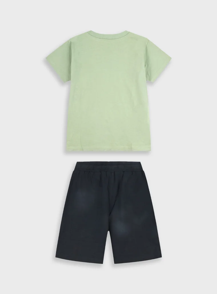 Σετ κοτνομάνικη μπλούζα με τύπωμα και βερμούδα για αγόρι.